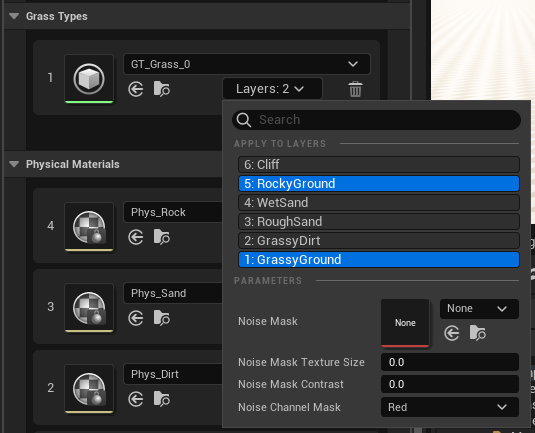 APPLY TO LAYERS: Select which Layers to apply this Grass Type to.