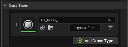 While Grass Types are laid out like Layers, their order doesn't actually matter as they are applied to Layers through the Layers Dropdown. Click Add Grass Type to add a new Grass Type to this Material.